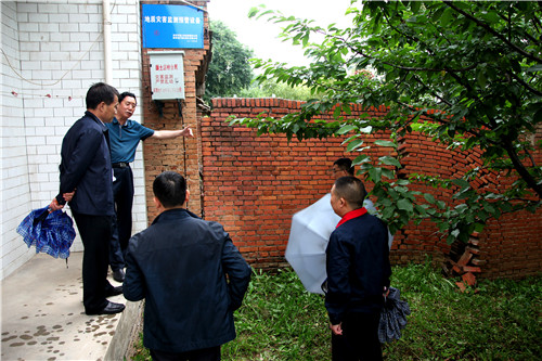 ? ? 檢查組對王家坡地質災害隱患4處監(jiān)測點進行了實地查看,邊查看邊聽取物化探隊領導和西安地質災害智能檢測預警技術服務中心關于監(jiān)測情況匯報,并提出有關注意事項。