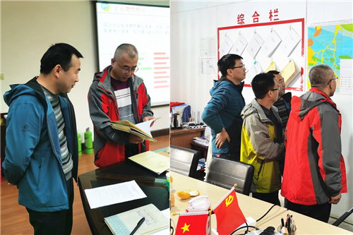 ??? 檢查組一行檢查工作的同時,正逢專家組對項目進行野外驗收,李新勝、劉建利在陪同專家組對該項目野外驗收后,檢查了項目安全生產和基層黨建等工作,審閱了項目野外工作總結及原始資料,聽取了項目野外工作匯報,實地檢查了大功率多場源張量可控源音頻大地電磁測深發射源布設情況,抽查了部分實際測點。