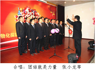 ? ? 伴隨著炫動的燈光,激情的音樂,歌曲《歡聚一堂》拉開了晚會的序幕,也拉開了歡樂和友誼的序曲。大家在這里歡聚一堂,聚一份祝福,聚一份吉祥,聚一份興旺,滿懷激情、滿懷喜悅共同祝愿物化探事業蒸蒸日上。一曲抒情的《朋友》唱出了互相關心、互相愛護、團結友愛,大家用心感受這份真情,用愛融化冰雪,用真誠點亮希望。雄壯有力的男聲大合唱《團結就是力量》,表達了物化探人凝聚力量、團結奮進、求真務實的精神風貌。具有濃郁民族特色的舞蹈《格桑花開》將晚會推向高潮。由職工創作的小品《地礦達人秀》,表現了物化探人熱愛生活,并以其風趣幽默,新穎獨特的設計引起了觀眾的極大興趣,博得了職工的陣陣掌聲。由職工創作的配樂詩朗誦《物探者之歌》,謳歌了物探人“三光榮”和“四特別”精神,盡管被山風吹裂了臉頰,驕陽炙燙了皮膚、嚴寒凍傷了手腳,無論如何也熄滅不了他們為了地質事業迎難而上、砥礪奮進、無私奉獻的滿腔熱血。充滿青春活力的舞蹈《小蘋果》,將演出再次推向高潮。晚會在全體演職人員《難忘今宵》的大合唱歌聲中落下帷幕。