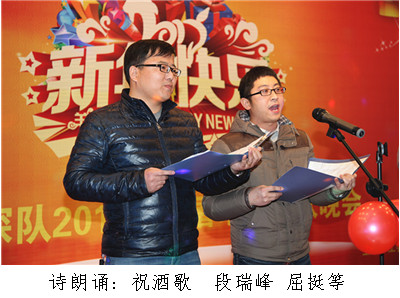 ? ? 伴隨著炫動(dòng)的燈光,激情的音樂(lè),歌曲《歡聚一堂》拉開(kāi)了晚會(huì)的序幕,也拉開(kāi)了歡樂(lè)和友誼的序曲。大家在這里歡聚一堂,聚一份祝福,聚一份吉祥,聚一份興旺,滿(mǎn)懷激情、滿(mǎn)懷喜悅共同祝愿物化探事業(yè)蒸蒸日上。一曲抒情的《朋友》唱出了互相關(guān)心、互相愛(ài)護(hù)、團(tuán)結(jié)友愛(ài),大家用心感受這份真情,用愛(ài)融化冰雪,用真誠(chéng)點(diǎn)亮希望。雄壯有力的男聲大合唱《團(tuán)結(jié)就是力量》,表達(dá)了物化探人凝聚力量、團(tuán)結(jié)奮進(jìn)、求真務(wù)實(shí)的精神風(fēng)貌。具有濃郁民族特色的舞蹈《格桑花開(kāi)》將晚會(huì)推向高潮。由職工創(chuàng)作的小品《地礦達(dá)人秀》,表現(xiàn)了物化探人熱愛(ài)生活,并以其風(fēng)趣幽默,新穎獨(dú)特的設(shè)計(jì)引起了觀(guān)眾的極大興趣,博得了職工的陣陣掌聲。由職工創(chuàng)作的配樂(lè)詩(shī)朗誦《物探者之歌》,謳歌了物探人“三光榮”和“四特別”精神,盡管被山風(fēng)吹裂了臉頰,驕陽(yáng)炙燙了皮膚、嚴(yán)寒凍傷了手腳,無(wú)論如何也熄滅不了他們?yōu)榱说刭|(zhì)事業(yè)迎難而上、砥礪奮進(jìn)、無(wú)私奉獻(xiàn)的滿(mǎn)腔熱血。充滿(mǎn)青春活力的舞蹈《小蘋(píng)果》,將演出再次推向高潮。晚會(huì)在全體演職人員《難忘今宵》的大合唱歌聲中落下帷幕。